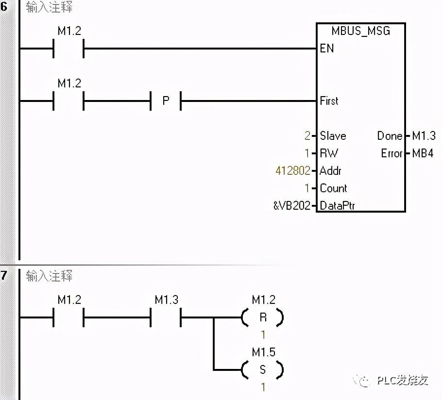 程序段7使用轮询的方式来做,当M1.5接通,完成位M1.4接通复位M1.5并置位下一条MSG指令M13.0。