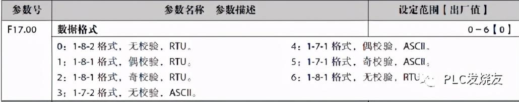F17.00设置为1(1个停止位、8个数据位、偶校验、)