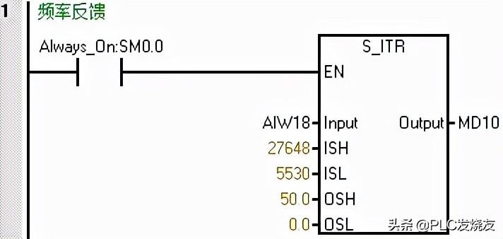 第二步:(通过变频器模拟量输出给定PLC反馈当前频率)