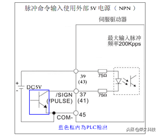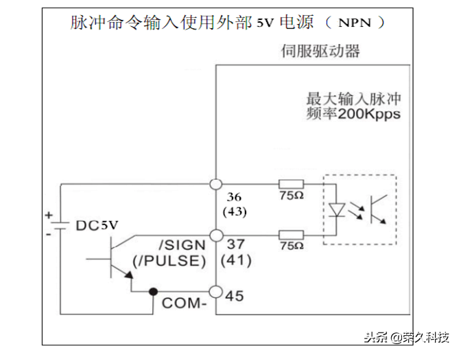2、NPN接线方式(5V输入型):适用A,A+,AB,A2伺服。