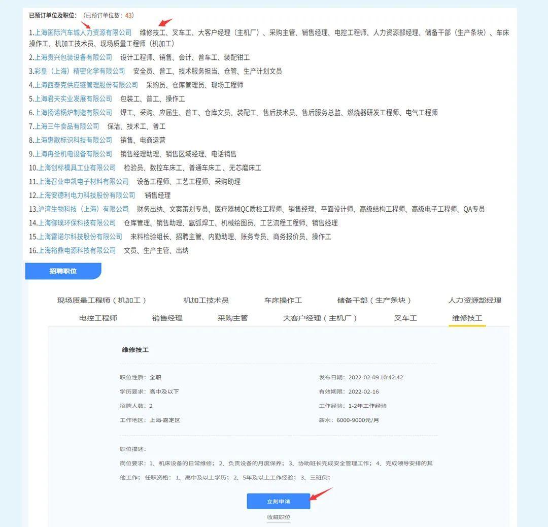 (二)进入嘉定伯乐人才网首页“2022年2月11日-2月16日嘉定人才市场网络招聘会”专题通道点击蓝字单位名称处进入招聘单位进行招聘岗位报名。