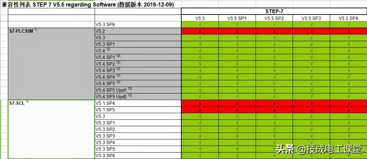 上图中红色×表示不兼容或者没经过西门子工程师的测试,绿色√表示兼容。
