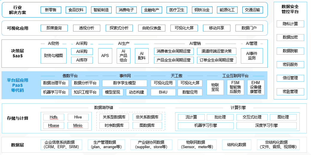 二是其数据平台和机器学习平台是高度模块化、松耦合组成的标准化PaaS产品,可以根据客户的需求任意进行模块组合,对客户的个性化需求进行配置化定制,灵活支撑行业应用构建;