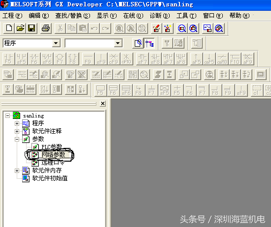 1、先将三菱PLC通电,并通过点击传输设置将三菱PLC编程电缆和电脑连接。2、打开三菱PLC编程软件GX-Developer。3、依次点击“在线”——“登陆关键字”——“...