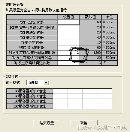 上图是选择TCP通讯协议时的情况,图中铅笔圈定的两个地方要注意,第一处一定要选“有顺序”否则会引起通讯失败,第二处一定要选 “确认”,这样才能与上一图中的设置相对应,否则会导致通讯恢复需要很长时间。
