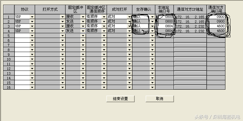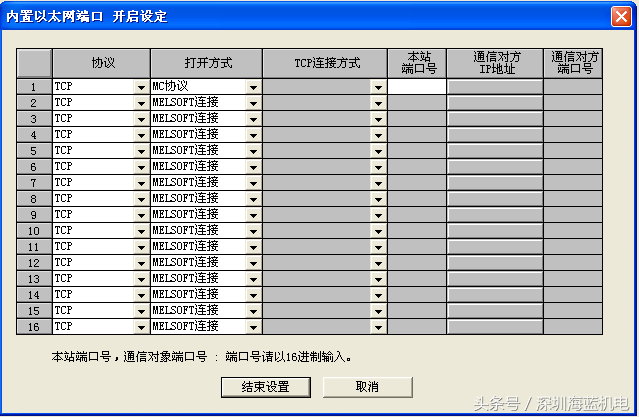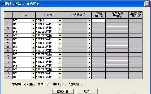 注意: 整个网络的PC和PLC,aaa.bbb.ccc部分要相同,ddd和PLCport,ComputerPort部分不要重复