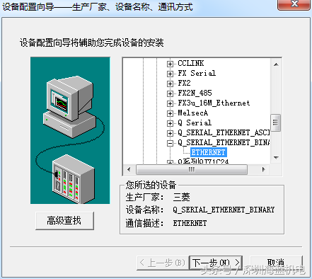 (1) 第一个步骤同使用内置以太网模块,本例以外置三菱以太网模块QJ17E71-100为例;