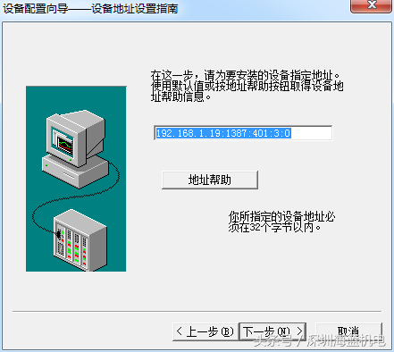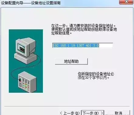 选择UDP通讯协议时三处红色框之处都要注意,第一处同样要选确认,理由同上,第二处和第三处没有确定的值,一般建议最好使用700以后的端口。这里要强调的是当我们选择设备时,设置设备地址时地址中的端口值要与此图一致,如下图