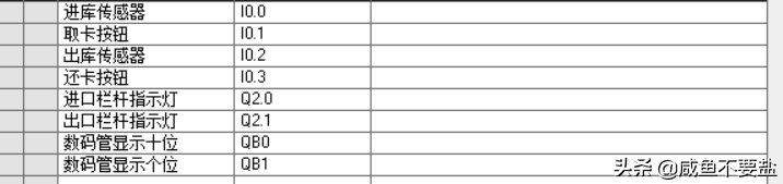 用PLC编程实现空位控制显示系统,并进行模拟调试。车库共有停车位10个,进、出库传感器各一个,进出口自动栏杆(指示灯代替)各一个,进口取卡/出口还卡(按钮)各一个,2个7段数码管。