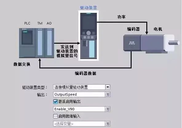 S7-1500 支持多种连接方式。可以使用 PROFIBUS DP 和 PROFINET IO 连接驱动装置和编码器,也可以使用模拟量输出模块(AQ)连接带模拟设定值接口的驱动装置并通过工艺模块(TM),读出编码器的信息。本文中所涉及的例子就是使用第二种方式。