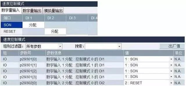 本例中使用 V90 的 X8 接口的 DI1 作为使能输入,即设置参数 p29301 为 1。