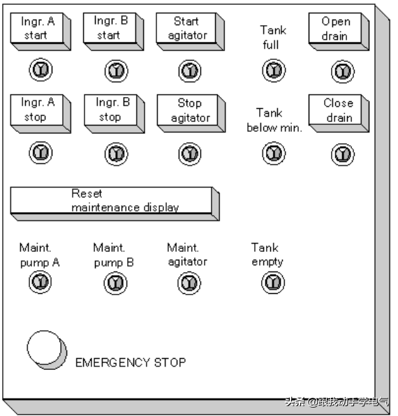 a 在紧急断电开关(急停)后,切断所有设备的电源(当然这里不需要通过PLC)b PLC的输入指示紧急断电开关(急停)的状态。
