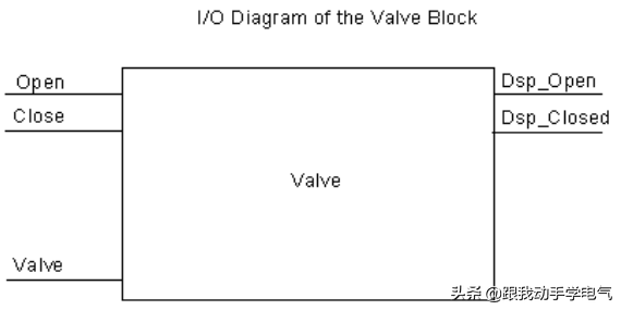 每个阀都由其自身的"阀块"控制,该块对于所使用的所有阀都相同。逻辑块有两个输入:一个输入用于打开阀,一个输入用于关闭阀。它还有两个输出:一个输出用于指示阀打开,另一个输出用于指示阀闭合。