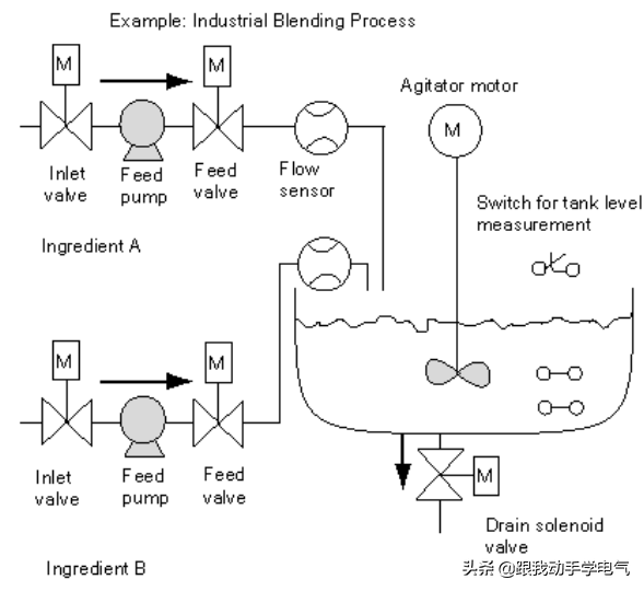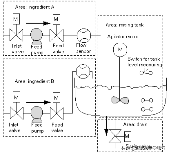 示例如下图所示,一个工业混料过程的项目,具体的项目要求就不说了(不做具体编程,只说思路)