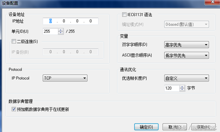 输入PLC以太网地址 ,完成配置