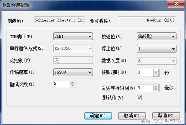 配置串口通讯参数然后点 OK,完成配置