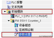 打开项目树,在“本地模块”中找到FM350-1的“参数设置”选项,如图1-5及1-6所示。