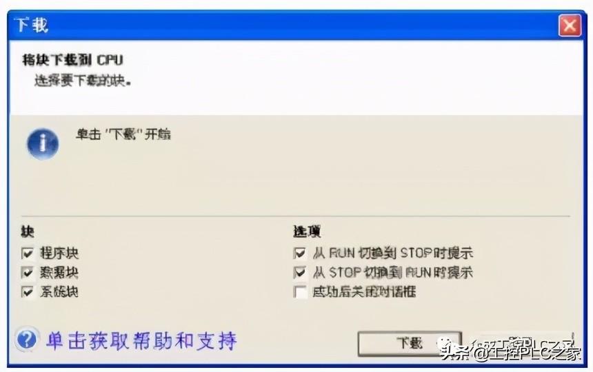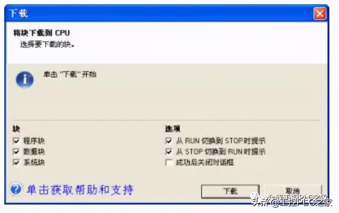单击“下载”(Download)对话框中的“下载”(Download)按钮。STEP 7-Micro/WIN SMART将完整程序或您所选择的程序组件复制到 CPU。如果 CPU 处于 RUN 模式,将弹出一个对话提示您将 CPU 置于 STOP 模式。单击“是”(Yes) 可将 CPU 置于 STOP 模式。