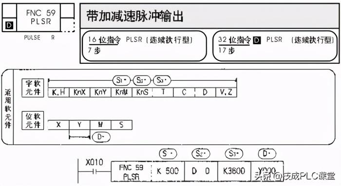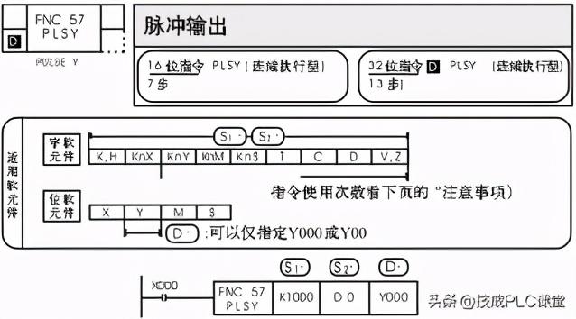 PLSY指令比较简单,三有一点值得注意的是,若脉冲个数为K0,不是指输出脉冲个数为0(S2=0),而是指脉冲的连续输出,即驱动条件接通,脉冲就一直输出,不计个数,直到驱动条件断开,如执行指令PLSY K1000 K0 Y1。
