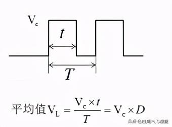 另外,脉冲输出信号还有一个变量就是平均值,PLC输出的脉冲是电压波,其平均值与脉冲高电平、占空比有关,如下图22-2所示。