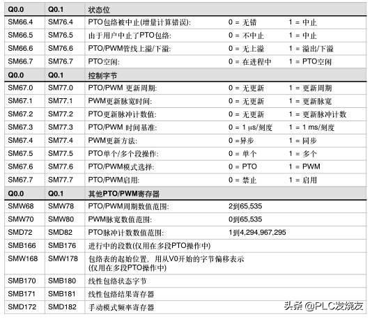 脉冲输出指令是会从系统存储器SM(包括控制字节)中读取数据,从而控制PTO/PWM发生器,这样我们就可以通过修改控制字节,然后执行PLS指令,来更改PTO或PWM信号波形。以下就附上PTO/PWM控制寄存器的SM标志表和PTO/PWM控制字节参考表。