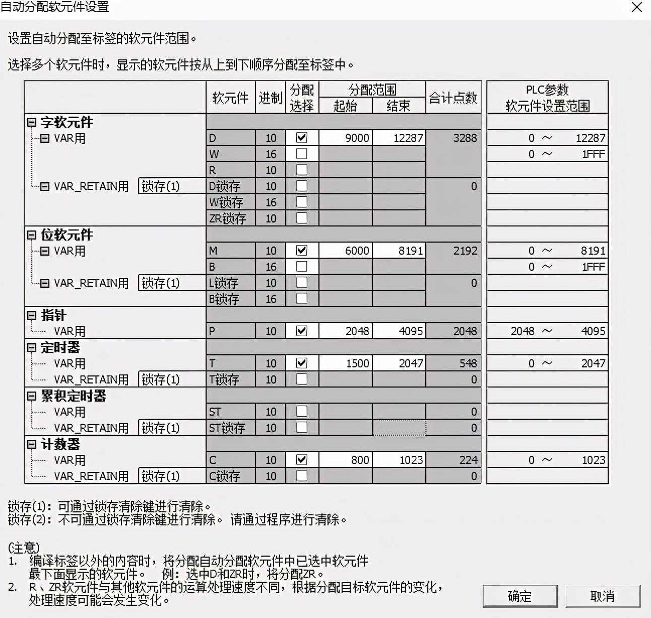 5:因为我们是ST标签形式的编程,虽然不是直接用的我们之前熟悉M0,M1,但是它在内部分配的也是M区,D区,这时候需要设置一下范围;如下图所示;