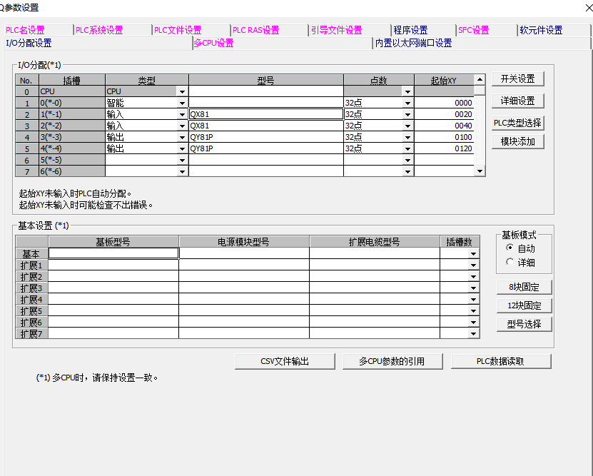 4:这个时候双击左侧那个参数,PLC参数,IO分配参数里面把需要的模块添加上去,我这个有个智能模块,这个是CCLINK模块,没有就不需要添加,只要把输入输出添加即可,后面选择相应的点数,选择起始地址号,别重复即可;