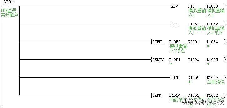 液位传感器模拟量输入后换算实际液位