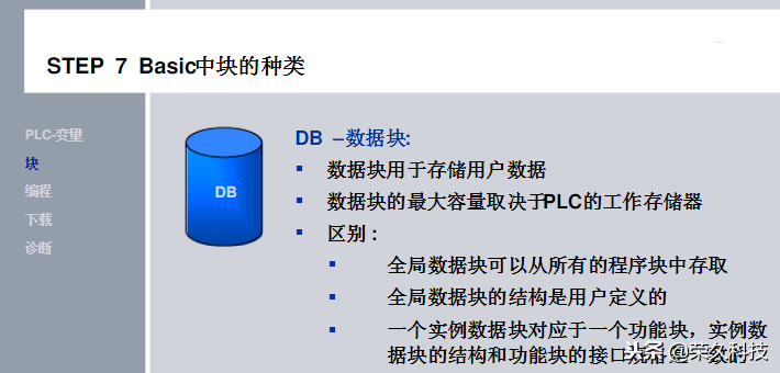 背景数据块 DB/ 全局数据块 DB(data block ):存储全局静态数据。
