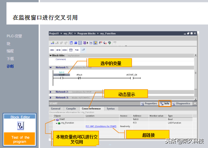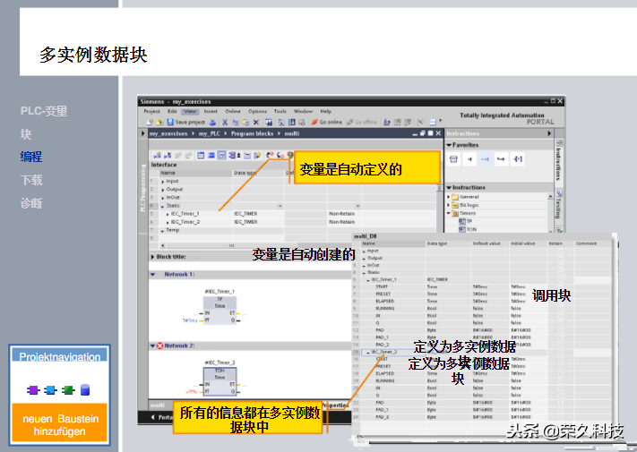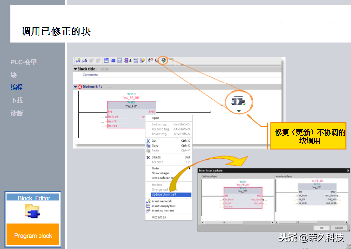 前者 FB12 内部的变量总会被扫描,而后者在 M3.0 或 DB_Valve.done 为 1 时,内部变量不会被扫描;相应的,前者 done 变量将被下一扫描周期置 0,而后者 done 置 1 后将因能流不通不能扫描而自行保持;