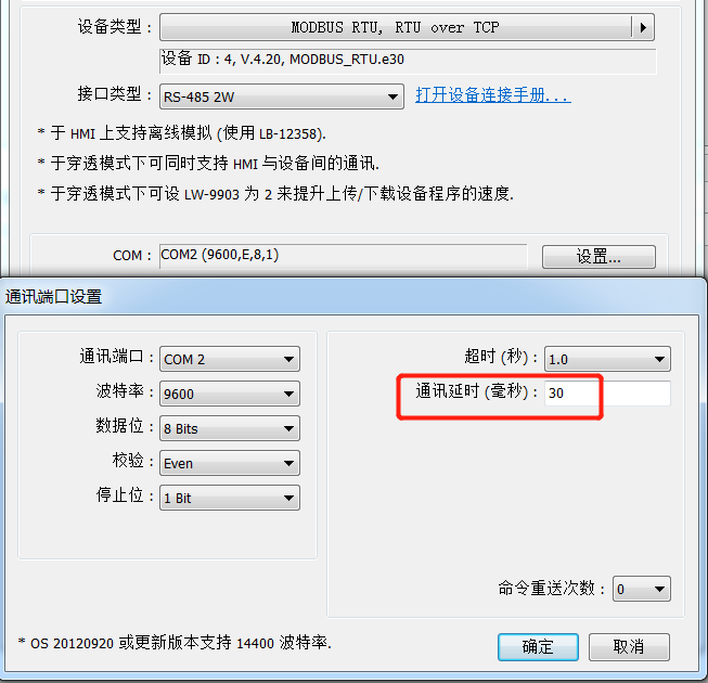A:将通讯延时调至30后实现通讯。