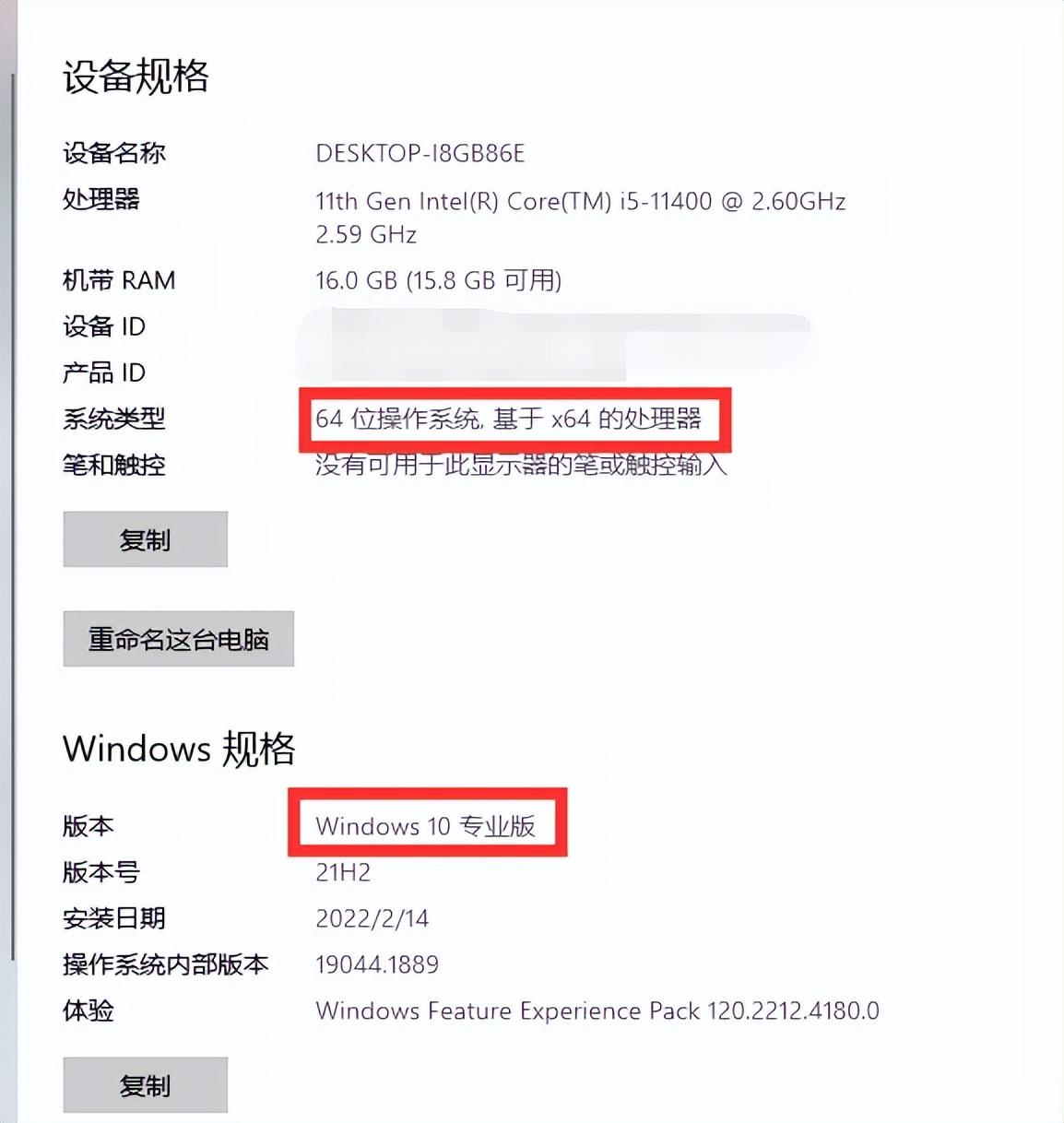 在我的电脑/此电脑右键属性查看