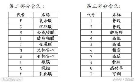 例如:RH42为:R代表电阻器,H为合成碳膜,4为高电阻,2为序号,意义为高电阻合成碳膜电阻,编号为2。