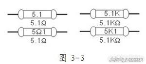 ① 在生产时直接将电阻阻值的大小印制在电阻器上,如图3-3:
