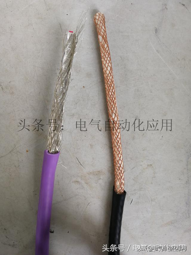 左侧为PROFIBUS-DP网线,右侧为普通屏蔽电缆。