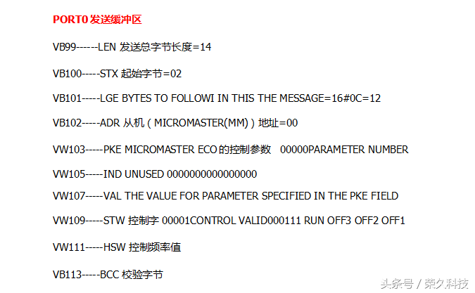 PLC与MICROMASTER(MM)是采用USS五字协议进行通讯,具体内存分配如下: