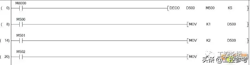 真正的日系编程思维是这样的,当然译码编码指令其他PLC厂牌中也有。