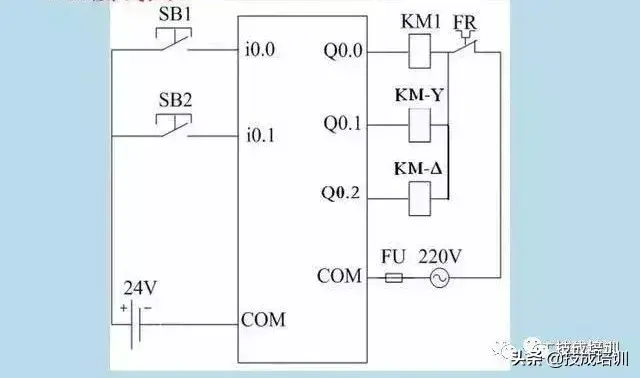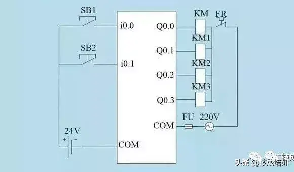 PLC的输出信号:电源接触器KM、短接R1接触器KM1、短接R2接触器KM