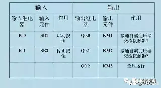 PLC的输出信号:运行接触器KM2、串接自耦变压器接触器KM1。