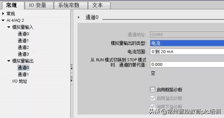 使用模拟量控制,在设备视图中设置PLC添加的模拟量模块的参数,参数设置界面如下图所示:图1-4,图1-5。