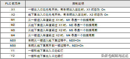 地下停车场的进出入车道为单车道,需设置红绿交通灯来管理车辆的进出。红灯表示禁止车辆进出,而绿灯表示允许车辆进出。当有车从一楼出入口处进入地下室,一楼和地下室出入口处的红灯都亮,绿灯熄灭,此时禁止车辆从地下室和一楼出入口处进出,直到该车完全通过地下室出入口处(车身全部通过单行车道),绿灯才变亮,允许车辆的从一楼或地下室出入口处进出。同样,当车从地下室处出入口离开进入一楼时,也是必须等到该车完全通过单行车道出,才运行车辆从一楼或地下室出入口处进出。 PLC 一开机运行时,一楼和地下室出入口处交通灯初始状态:绿灯亮,红灯灭。