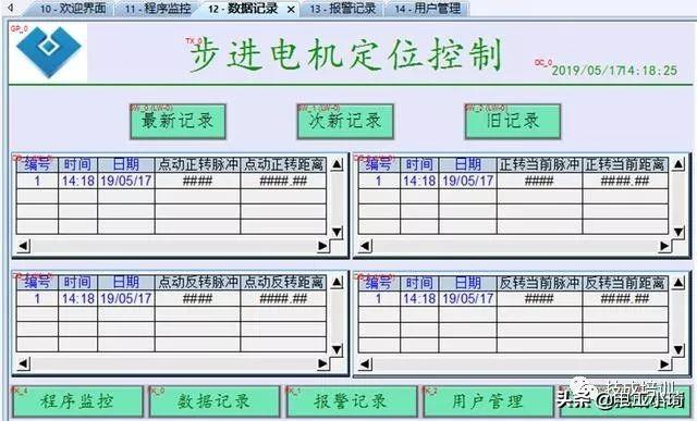 3、对于每次执行点动正反转、正反转定位,要求做资料取样和历史数据记录,时间为3天,可筛选日期查看数据记录。