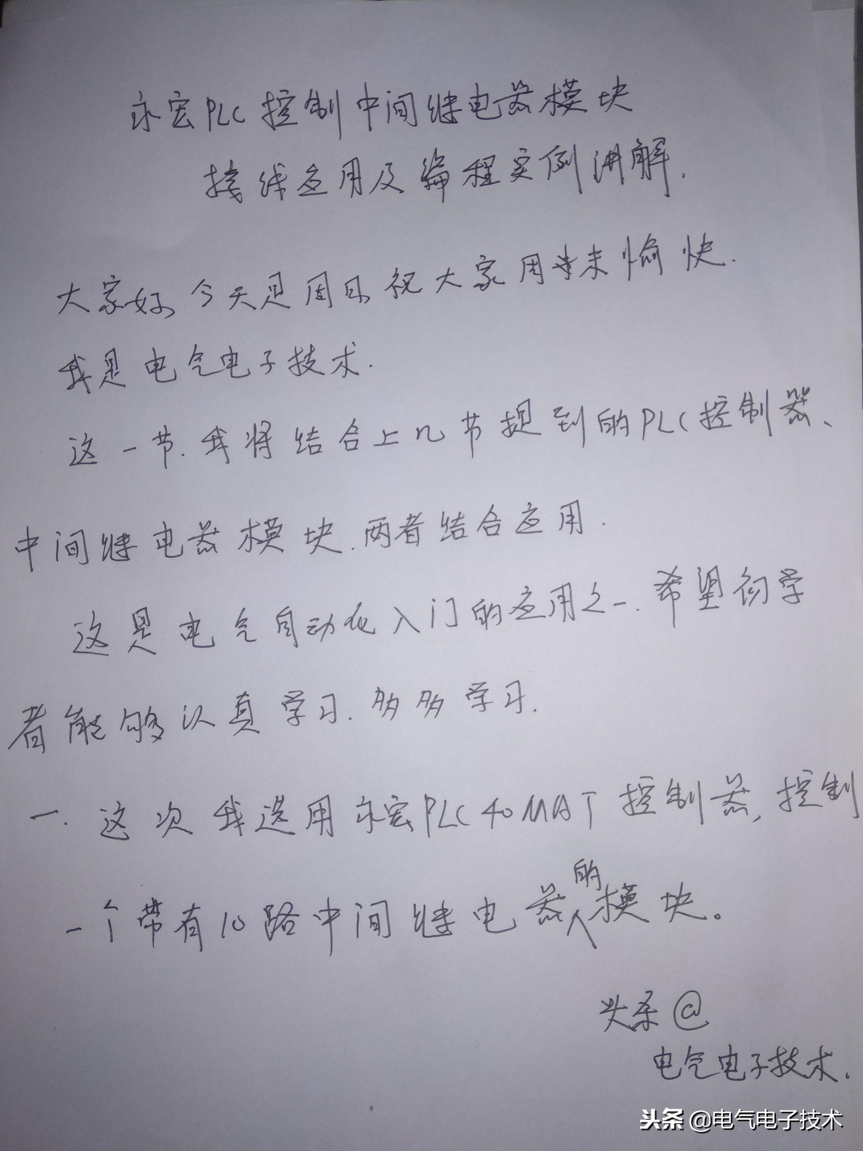 在上几节中,我分别讲到了开关电源、中间继电器模块、PLC控制器等的接线和应用讲解,这一节,我将结合这几个电气元件,组合成完整的电路控制,讲解两个实例应用,希望大家能多多关注和支持我。谢谢!
