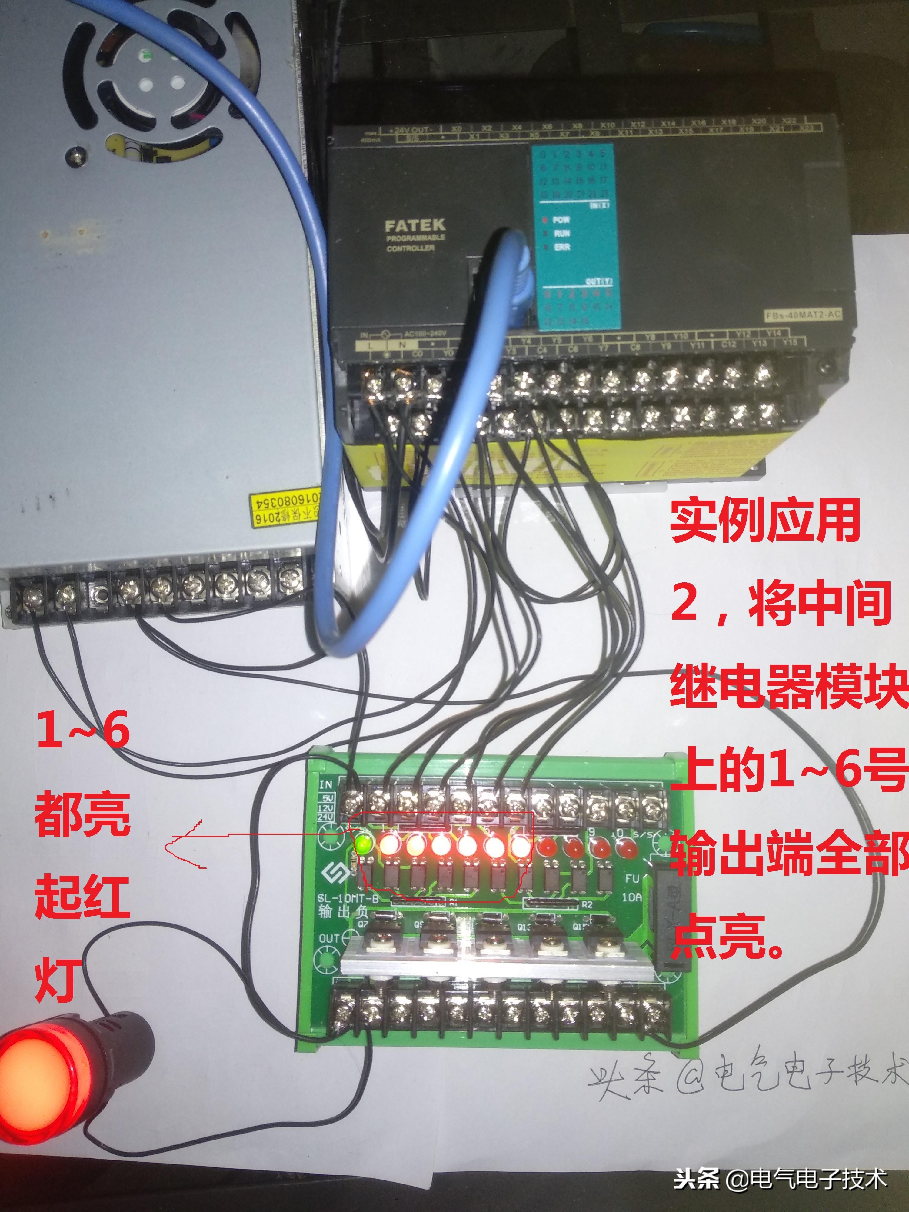 应用实例2,控制中间继电器1至6号接线端全部点亮: