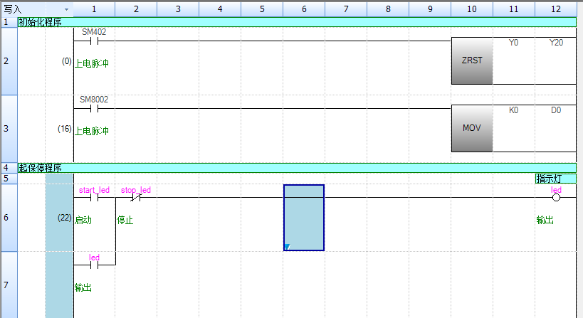2. 对输入梯形图部分的梯形图进行输入。