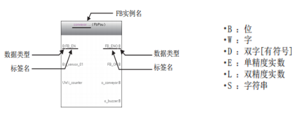 3. 所粘贴的FB实例上会显示输入输出变量的标签名及其数据类型。