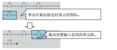 b. 通过快捷图标输入:在单击快捷图标后显示的梯形图输入画面中输入指令和参数。