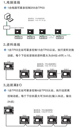 特点4: 3个通讯端口,具有3种通讯功能(如右制说明)。