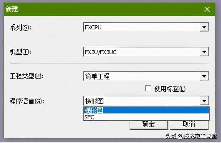在PLC的编程语言中,最简单的就是图形语言,如我们所学的梯形图与SFC,这两者在编程软件中都属于简单工程。