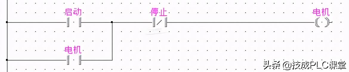 当然,和子程序不同的是,这个自定义的功能块,其中的一些触点、线圈等只是用标签命名,如图27-3中的“启动”、“电机”等就是用文字命名的标签。